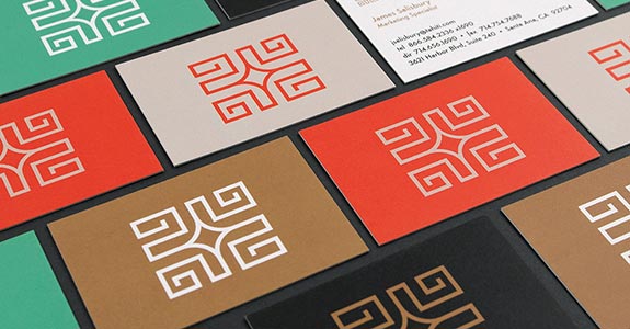 Iconic Extensions: Sometimes an iconography system or pattern motifs can be created out of the main mark to help depict different aspects of the company’s business. Take a look at how color and layout is used to create interesting brochure covers, background graphics and motifs that can be used across all marketing materials.