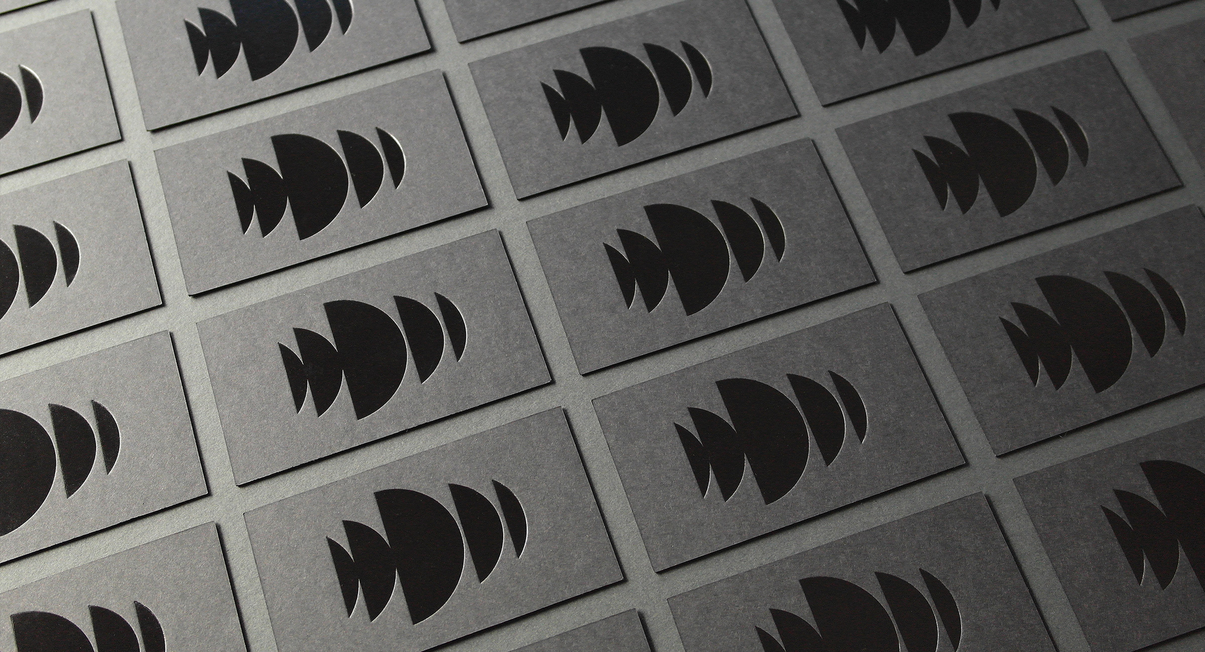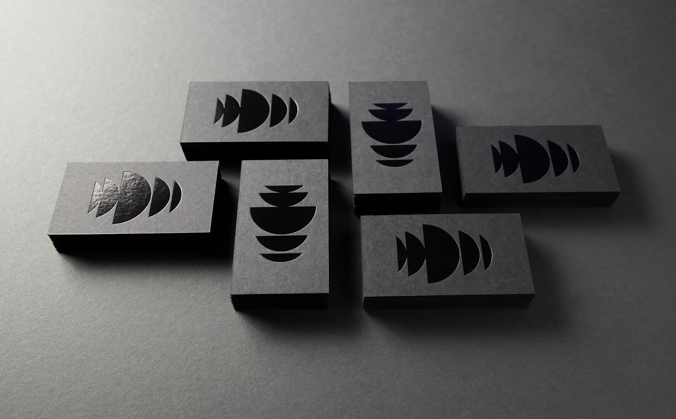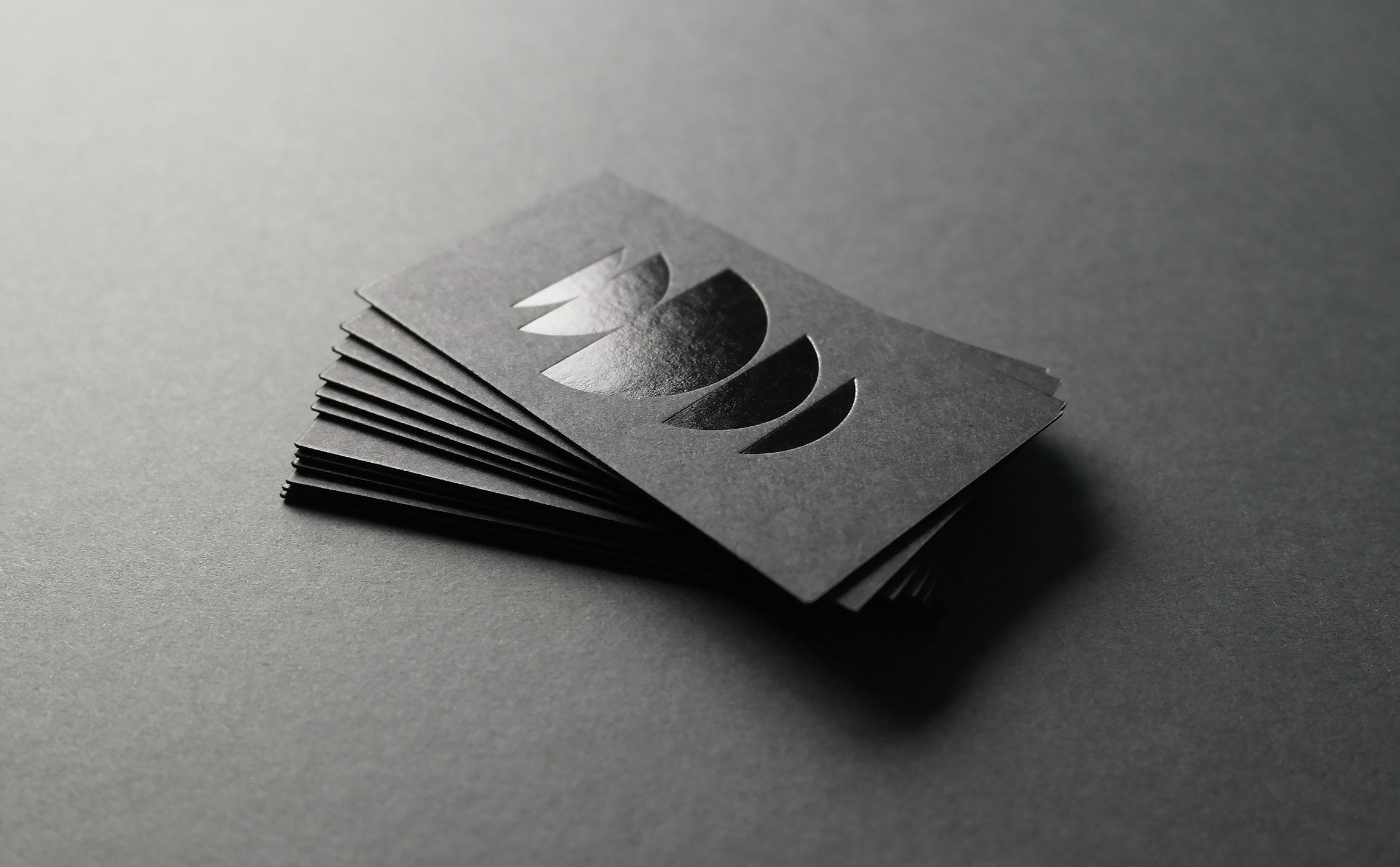 We designed dark and mysterious business cards for the team. Cards are printed using duplexed French Muscletone stock with black foil embossed on the front and silkscreened pale gray ink on the back.