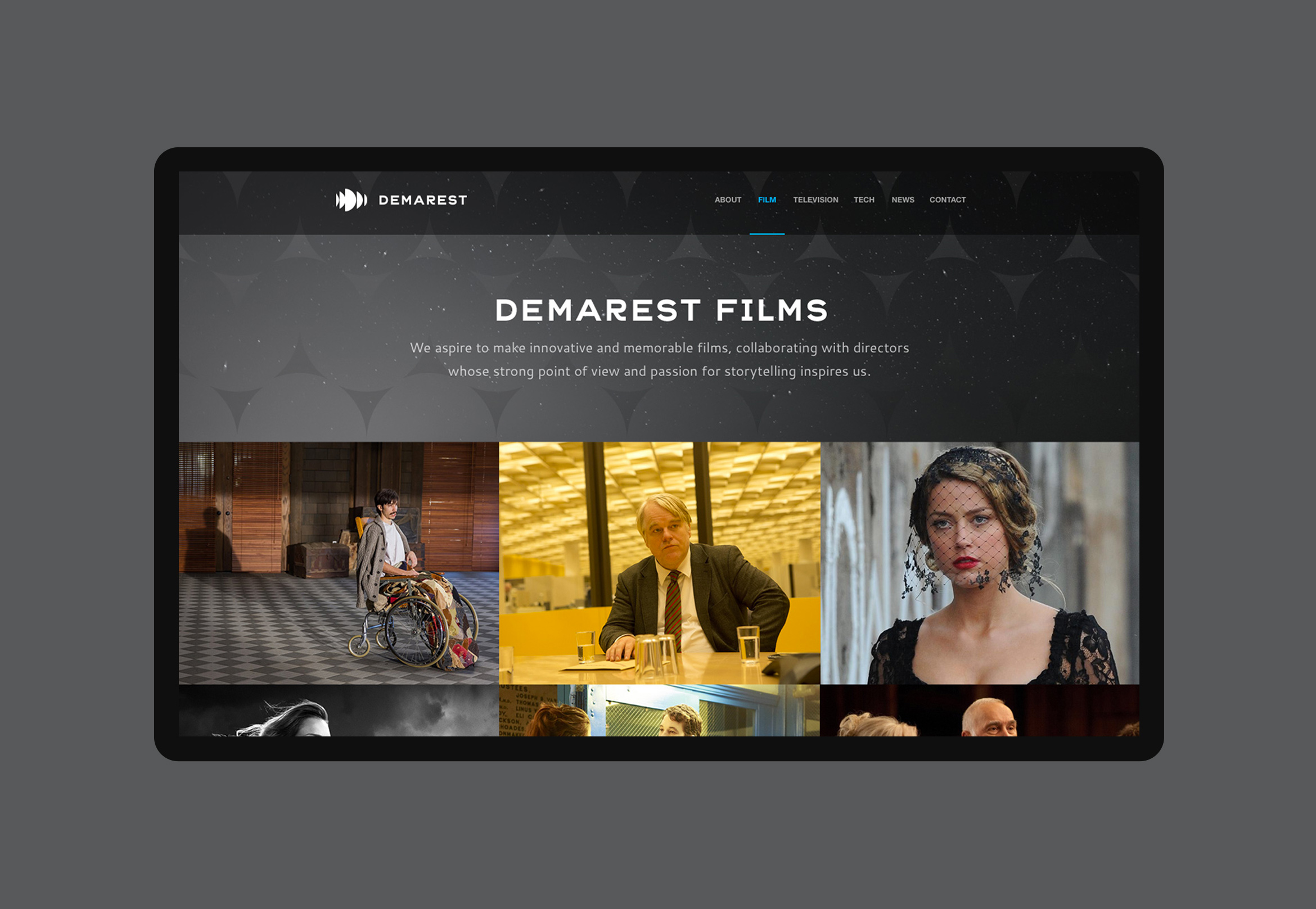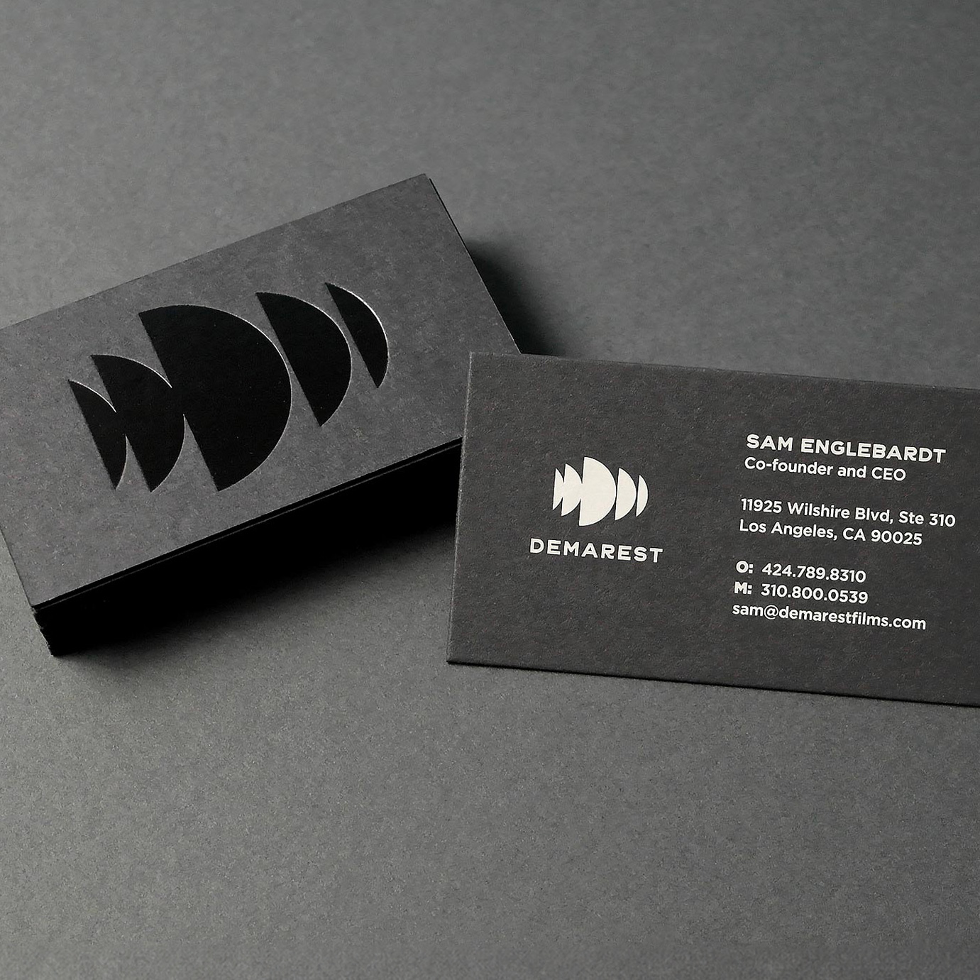 Demarest is a unique film and television production company that also invests in technologies that create and deliver premium content across all mediums. They wanted to remove the “films” from their name and redesign their identity to better reflect their innovative business model.