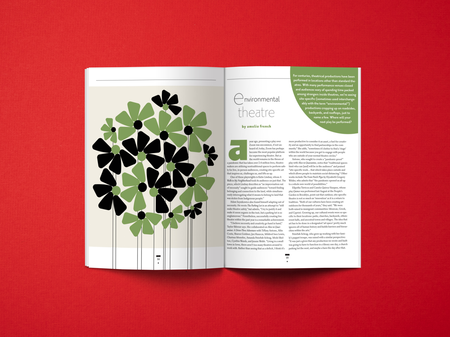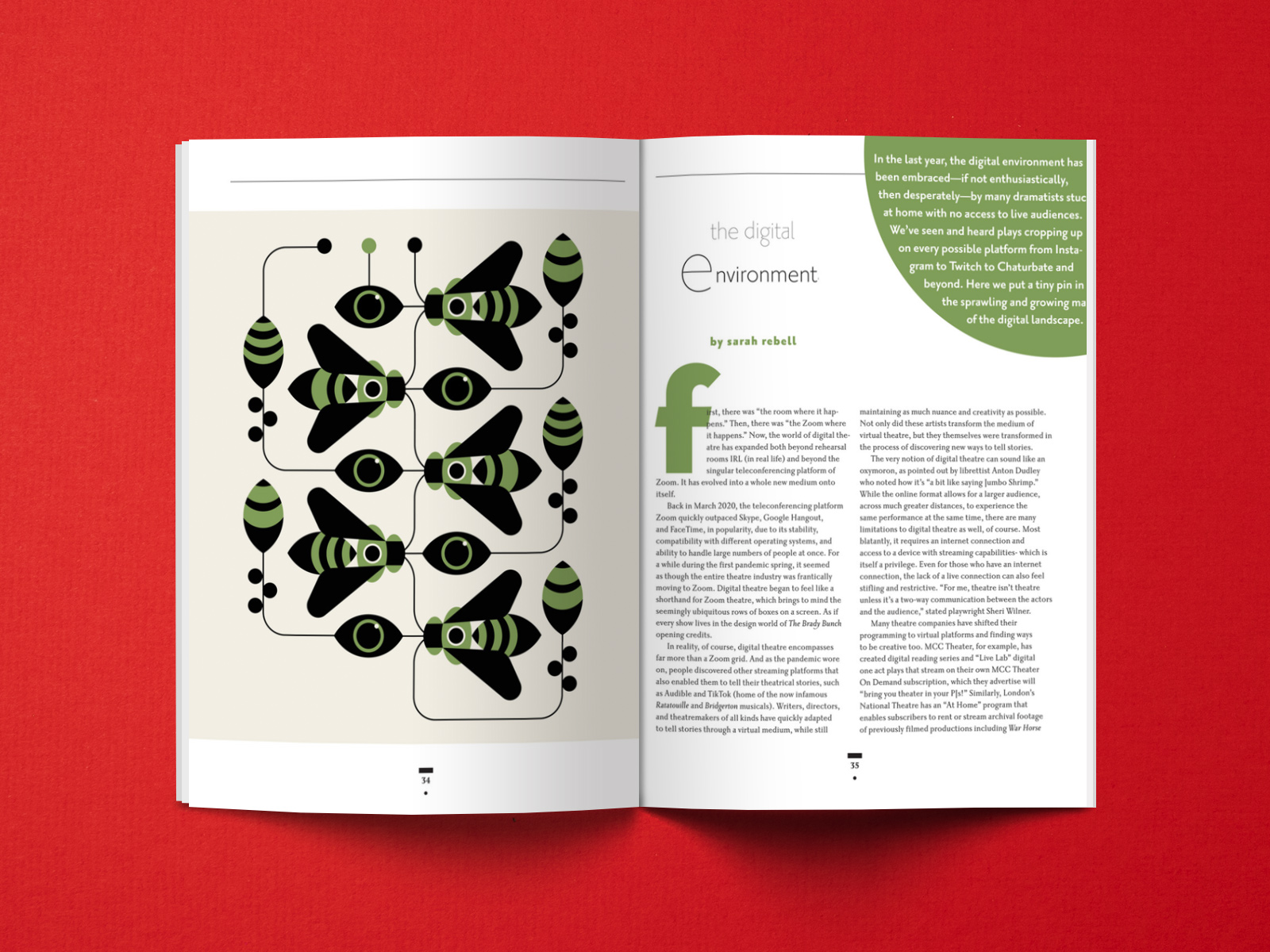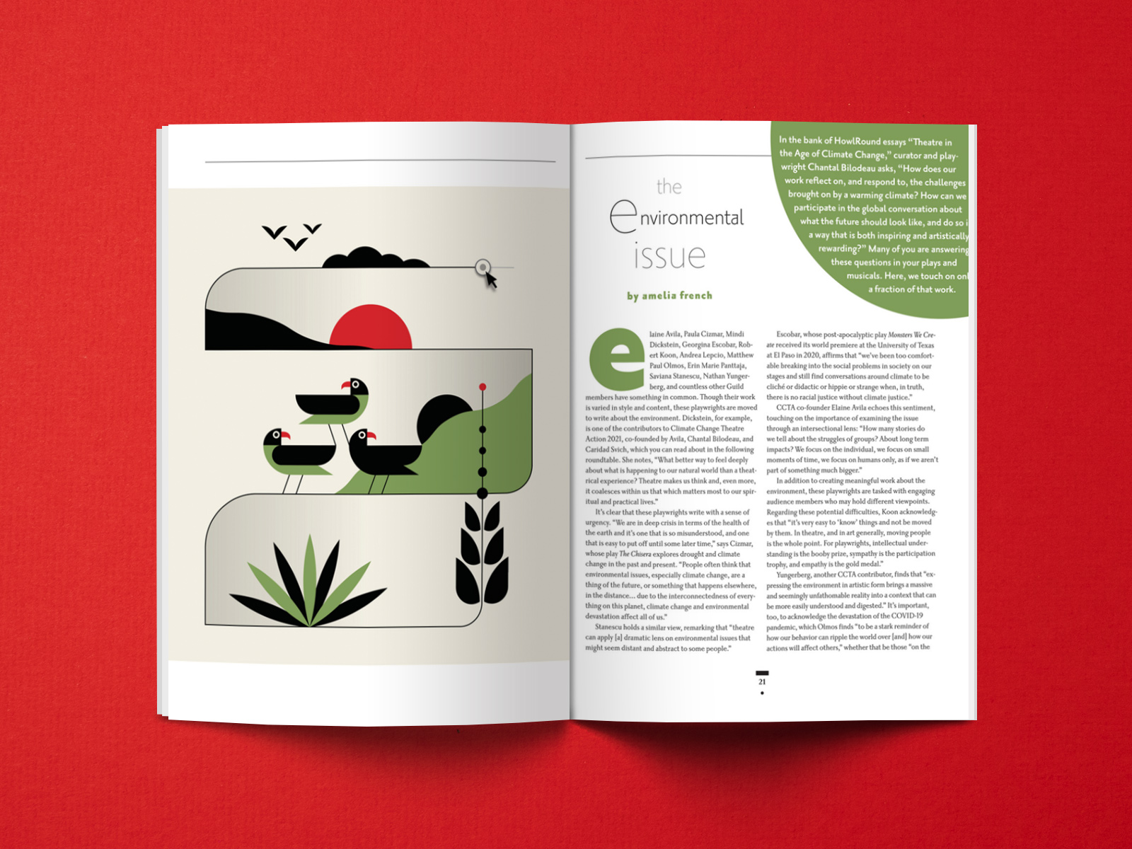 For the Dramatist’s Environmental Issue, we created a cover and inside editorial illustrations utilizing our flora, insects and scenic pieces to help depict ideas around environmental theater and arts.