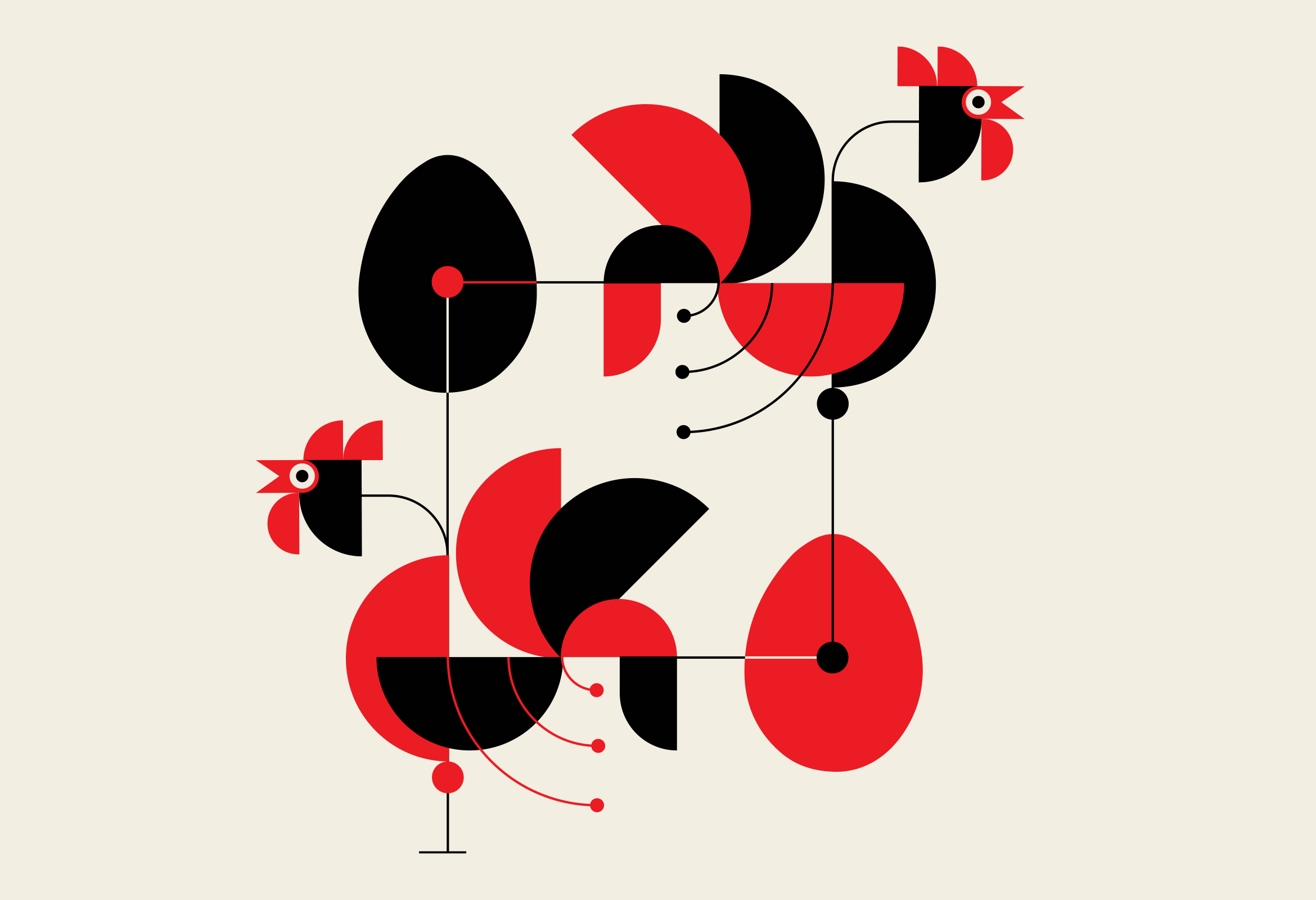For an article about the origin of ideas and copyrights, we created an original illustration plays on “Which came first: the chicken or the egg?” This is, of course, the classic metaphor describing situations where it’s not clear which of two events should be considered the cause. Our popular messymod letters were also licensed for use as initial caps throughout the magazine.