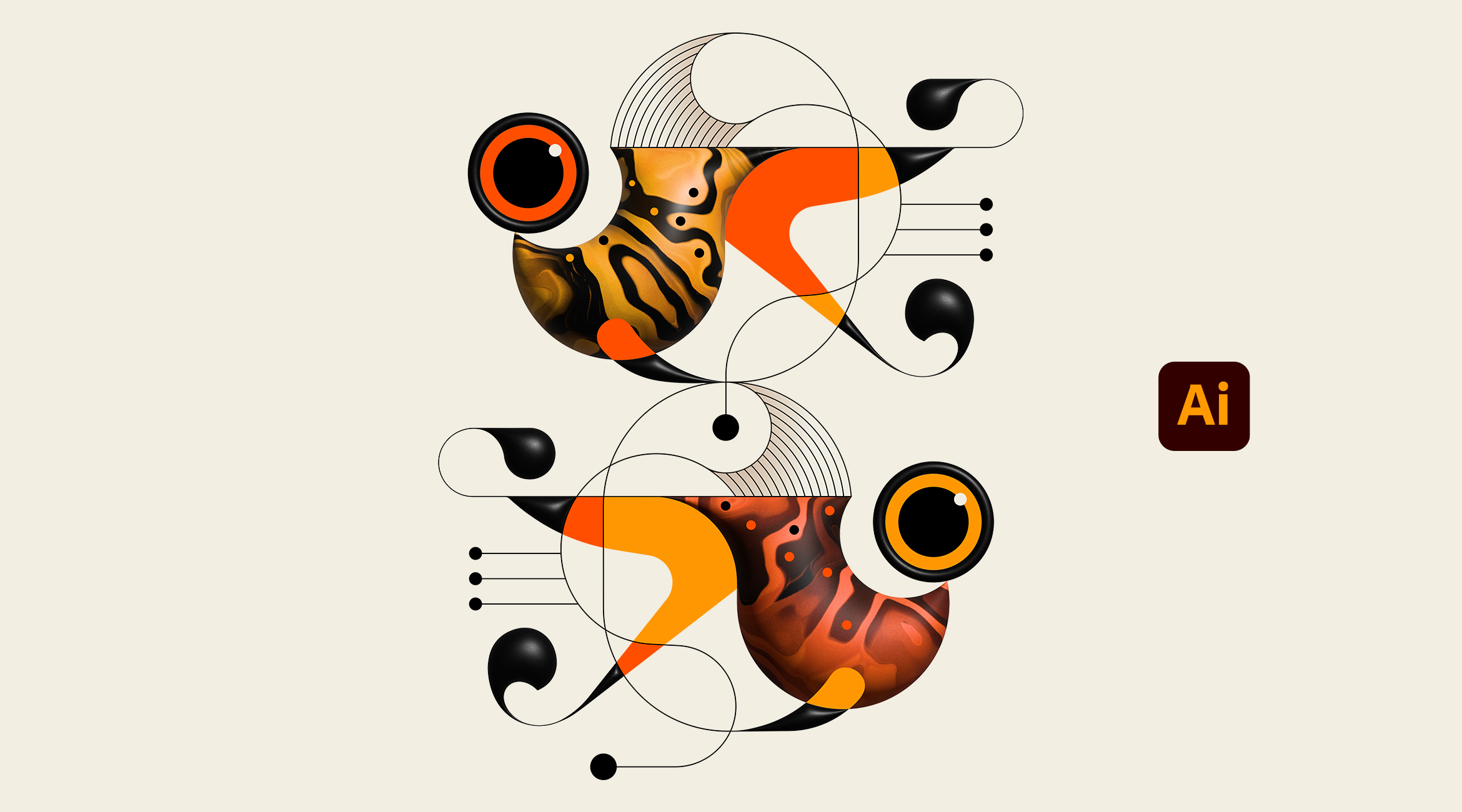 What can you “Dream Up” using the new Adobe Illustrator? “Weird Fishes” was created for the Adobe Illustrator 2025 splash screen you see when starting up the app. The artwork’s goal was to showcase a myriad of Illustrator tools and styles from typography to 3D materials, all while maintaining Adam G’s minimalist and quirky illustration style.