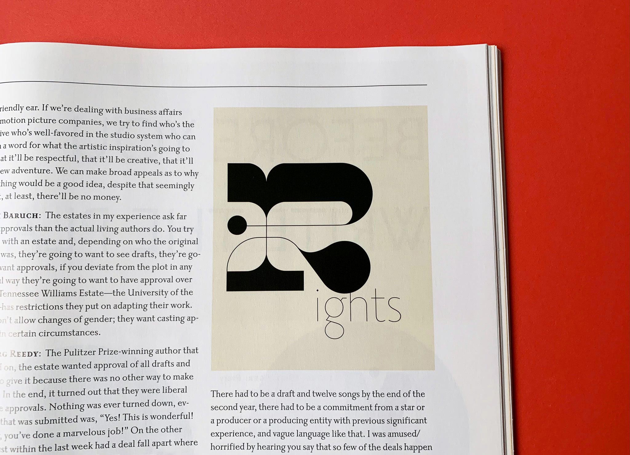 In our Messymod style, we created a play on “Which came first: the chicken or the egg?” This is, of course, the classic metaphor describing situations where it’s not clear which of two events should be considered the cause. Our popular letters from 36 Days of Type were also licensed for use as initial caps throughout the magazine. It’s always thrilling to see your work published and we thank the Dramatist for asking us to contribute!